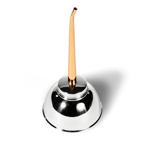 This elegant oil can made in sterling silver is a unique way to serve your olive oil or salad dressing. Handmade by silversmith Rebecca Joselyn, it features a screw-off top for easy filling and cleaning.