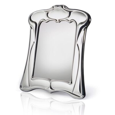 The Glasgow is a modern take on frames made in the Art Nouveau Period with design which emphasised flowing lines and organic, asymmetric forms. The frame is made from hallmarked sterling silver and is mounted on an engineered black wood back. The frame is also available as a mirror upon request, which would enhance any dressing table. Presented in a smart black gift box. We recommend a regular clean with an impregnated silver cloth.