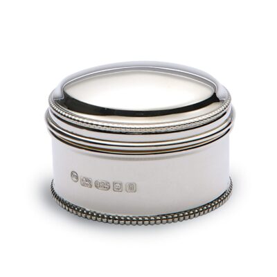 The M097 circular box is made from heavy sterling silver and is hallmarked. This box makes a great gift for any age group, and is particularly nice to be given to a child, who can then use it throughout their lives. The box is beautifully polished and the inside has been gold plated to create a beautiful contrast with the silver coloured exterior. Each piece comes in a lovely gift box and is perfect for engraving. To keep this item in pristine condition, we recommend a regular clean with a recommended silver polish and a soft cloth.