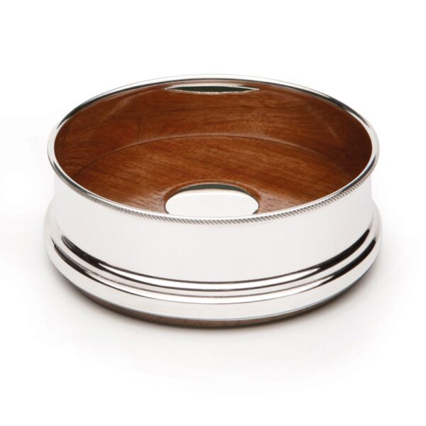 These hallmarked silver wine coasters make the perfect gift for wine lovers. Available in 2 sizes, the plain design, featuring a delicate ‘reeded or ‘thread top’ edge, makes them suitable for any dining table setting. The coasters are a classic piece – created from thick sterling silver, they have been hand made with exquisite polishing, and feature beautiful wooden bases made in American Black Walnut. This beautiful wood is slightly more modern, and certainly more luxurious than mahogany woods which are traditionally used by silversmiths. The heavy gauge of silver used to make these coasters makes them perfect for engraving. Each coaster is presented in one of our signature gift boxes. For maintenance purposes, any wine residue should be wiped off with a damp cloth to protect the natural wood. To prevent the silver from tarnishing, we recommend a regular clean with an impregnated silver cloth.