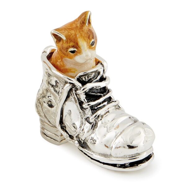 A beautifully crafted couple of cats in shoe ginger made in Silver and enamel. Our popular Saturno range consists of a series of exquisitely hand-crafted silver animal models. Using traditional techniques, the models are perfectly formed in high quality sterling silver, with multiple layers of vitreous enamel carefully applied before the models are fired. To prevent tarnishing, a final layer of lacquer is skillfully applied producing a wonderfully authentic finish. These exquisite models have timeless appeal, the perfect gift that is as unusual as it is unique. The couple of cats in shoe ginger form part of our our inspirational collection of models inspired by the natural world.