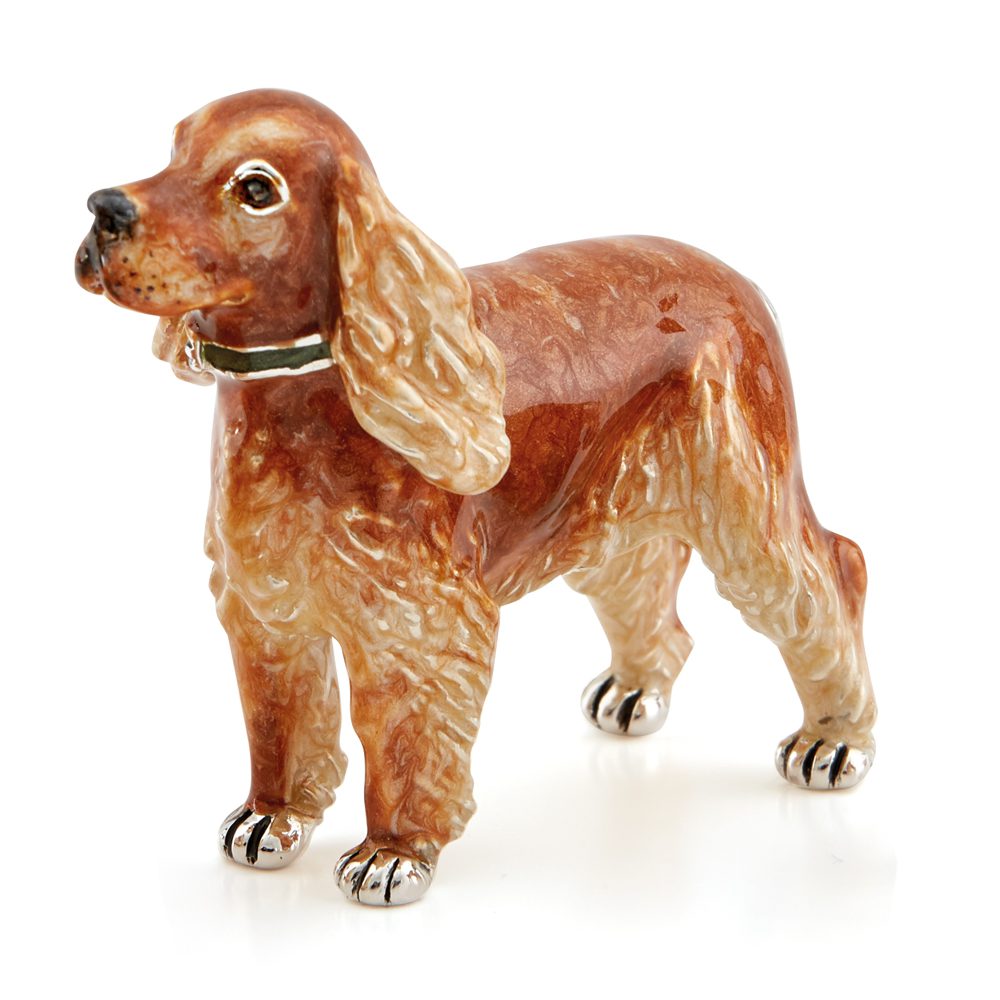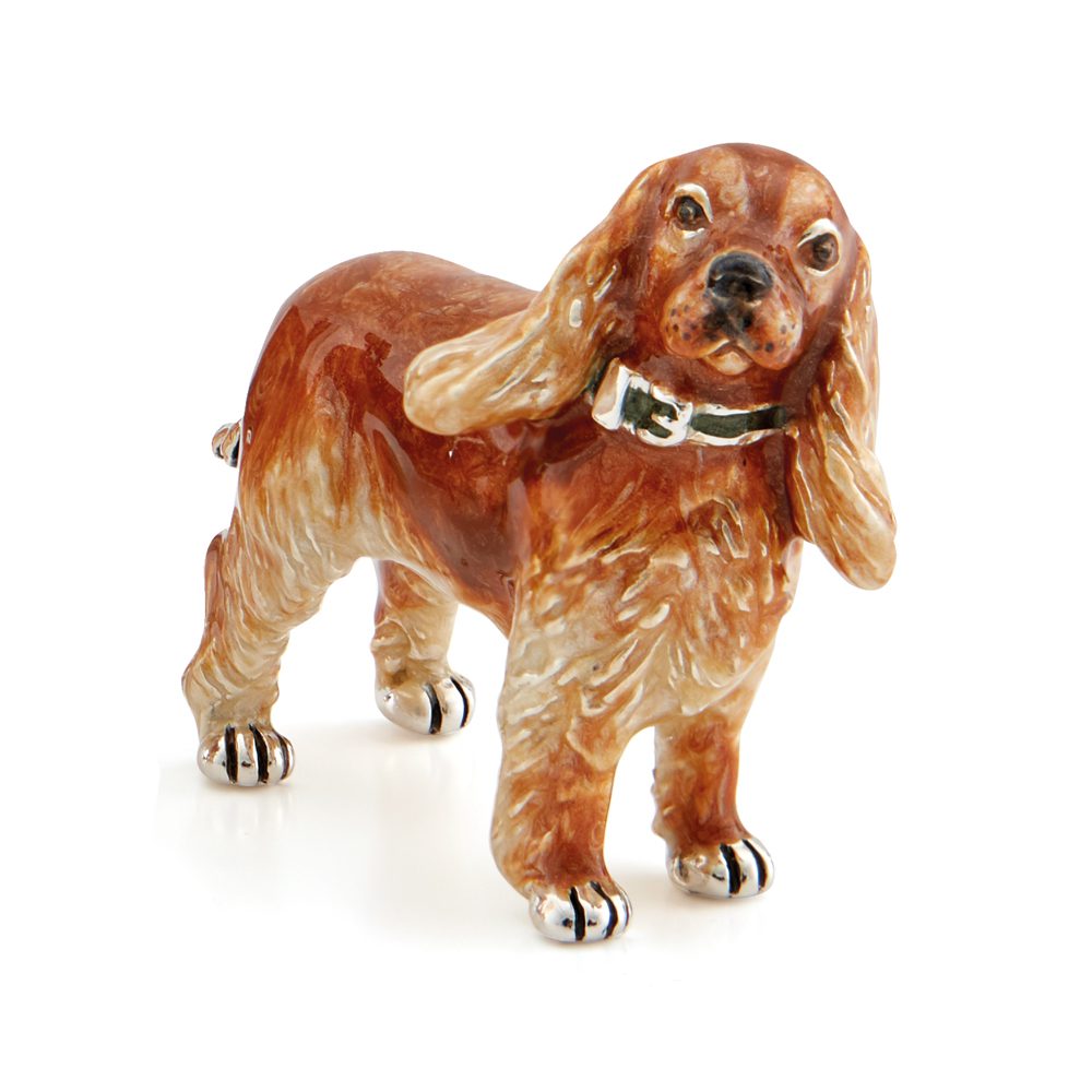A beautifully crafted cocker spaniel brown made in Silver and enamel. Our popular Saturno range consists of a series of exquisitely hand-crafted silver animal models. Using traditional techniques, the models are perfectly formed in high quality sterling silver, with multiple layers of vitreous enamel carefully applied before the models are fired. To prevent tarnishing, a final layer of lacquer is skillfully applied producing a wonderfully authentic finish. These exquisite models have timeless appeal, the perfect gift that is as unusual as it is unique. The cocker spaniel brown form part of our our inspirational collection of models inspired by the natural world.