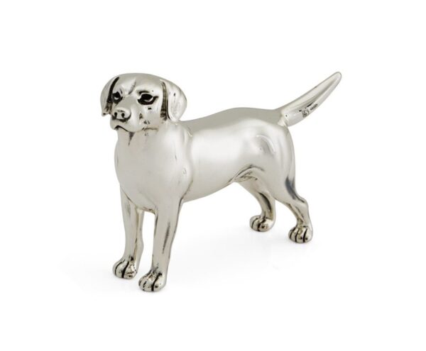A beautifully crafted labrador plain finish made in Silver and enamel. Our popular Saturno range consists of a series of exquisitely hand-crafted silver animal models. Using traditional techniques, the models are perfectly formed in high quality sterling silver, with multiple layers of vitreous enamel carefully applied before the models are fired. To prevent tarnishing, a final layer of lacquer is skillfully applied producing a wonderfully authentic finish. These exquisite models have timeless appeal, the perfect gift that is as unusual as it is unique. The labrador plain finish form part of our our inspirational collection of models inspired by the natural world. Please quote SMLAB as the general reference for this product for all enquiries.