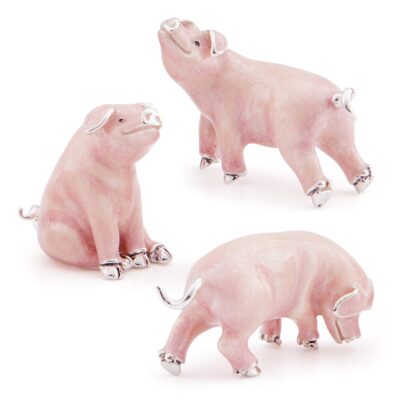 This family of vibrant pink pigs is available in 3 different poses and can be supplied individually or as a family. The attention to detail and the hand enameling make these an exceptional gift for any pig fan or an avid Saturno collector. The pigs are supplied in boxes and lacquering has been applied to help prevent tarnishing. Each item is hallmarked in the UK which is your guarantee that the piece is made in sterling silver. There is no need to use any harsh cleaning abrasives or silver products, a wipe with a soft cloth will keep your item in mint condition.
