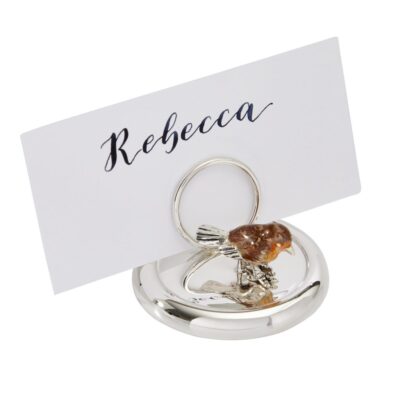 An exquisitely hand crafted robin place card holder, ‘Rebecca’ is made in sterling Silver and enamel. Using traditional silversmithing techniques, the models are perfectly formed in high quality sterling silver, with multiple layers of vitreous enamel applied and then skillfully made into place card holders. Menu and place card holders have for many years been one of the most collectable pieces in antique siver. These unique pieces use the traditional methods of silversmithing with a contemporary design. The holders can be bought separately or as a themed collection. This item is Hallmarked in the UK.