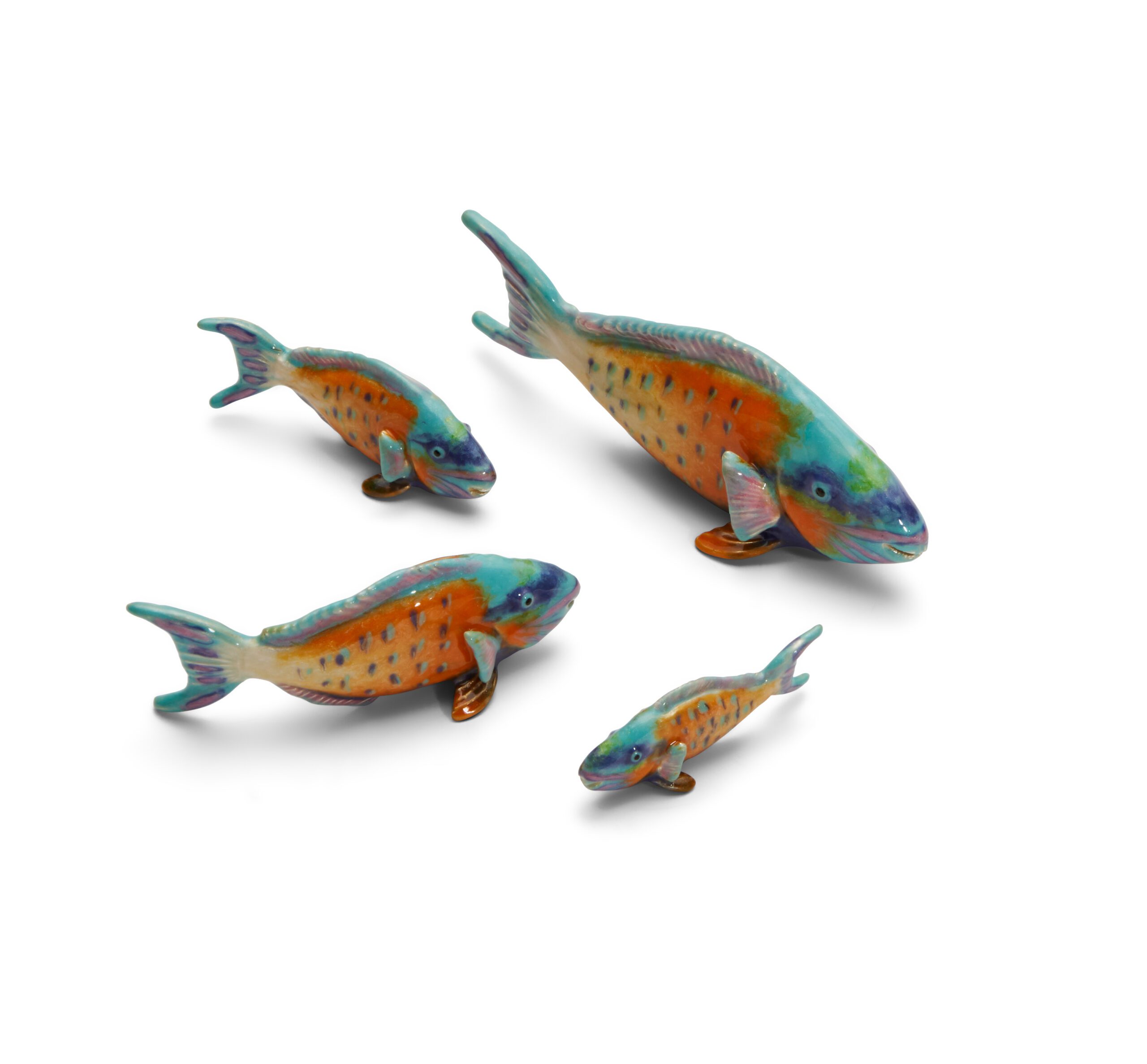 Saturno have created an incredible family of parrotfish, featuring eye catching enamelled colours which have been applied to the silver surface. These are incredible quality ornaments and make for highly unique gifts. Each piece is handmade with expert precision, from the initial modelling, through to casting and hand polishing, and onwards to hand enamelling, where the various colours are built up layer by layer, creating a visually stunning appearance, and making the pieces extremely hard wearing. Each parrotfish is lacquered to provide a protection against tarnishing, and is supplied in a smart gift box.