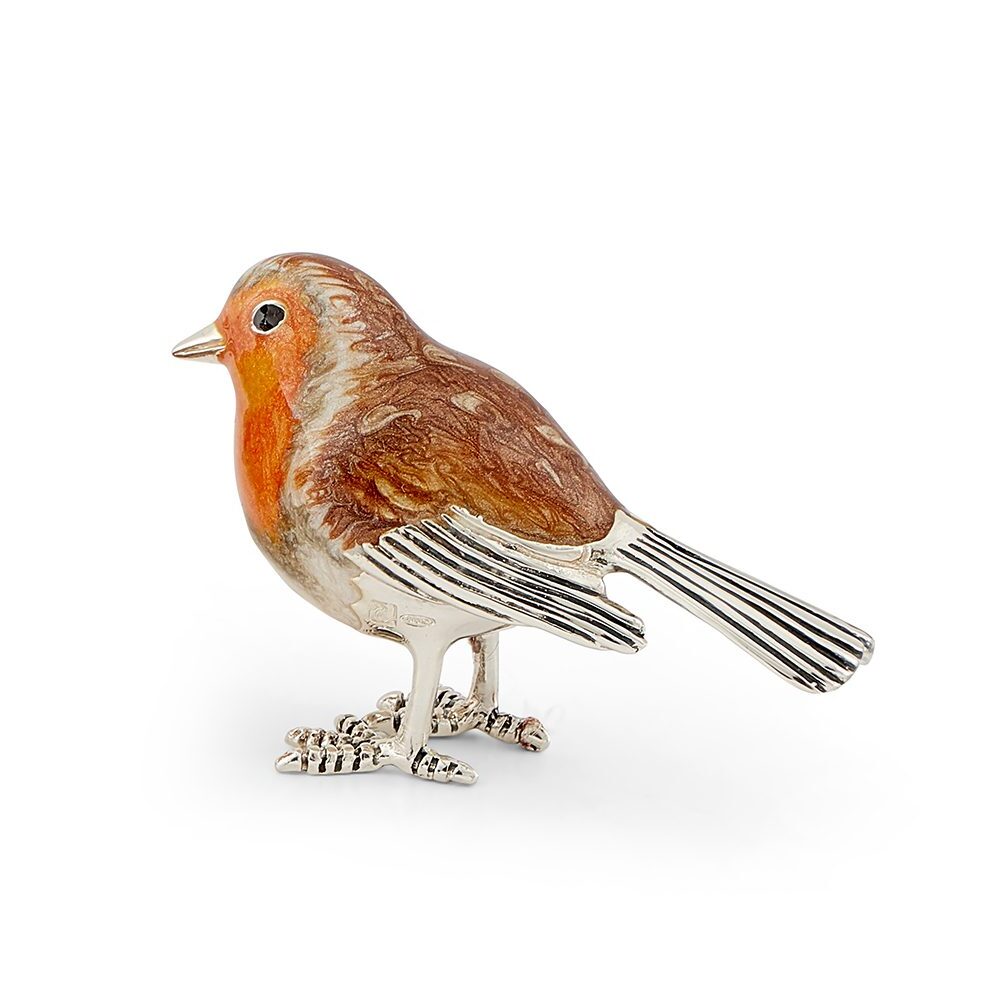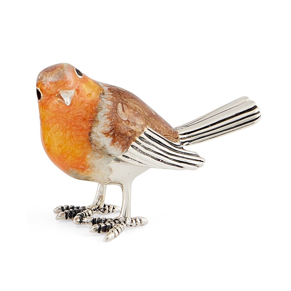 A beautifully crafted family of three robins made in Silver and enamel. Our popular Saturno range consists of a series of exquisitely hand-crafted silver animal models. Using traditional techniques, the models are perfectly formed in high quality sterling silver, with multiple layers of vitreous enamel carefully applied before the models are fired. To prevent tarnishing, a final layer of lacquer is skillfully applied producing a wonderfully authentic finish. These exquisite models have timeless appeal, the perfect gift that is as unusual as it is unique.