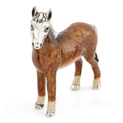 A beautifully crafted couple of dark brown horses standing/sitting made in Silver…