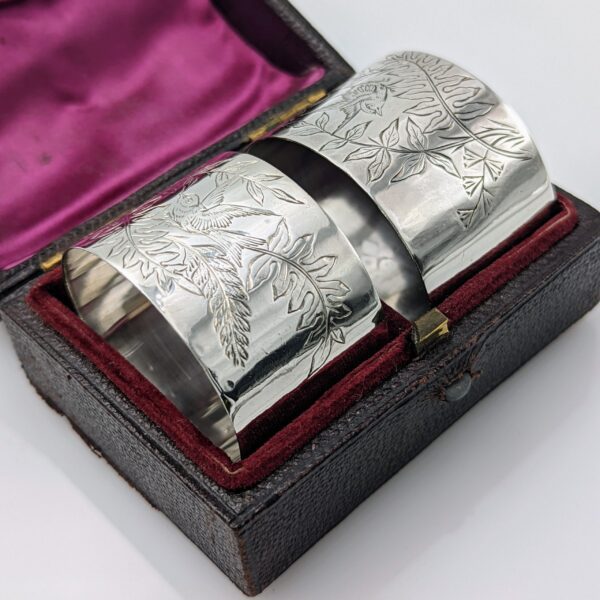 Pair boxed napkin rings – London 1883