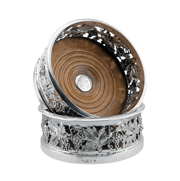 A timeless Victorian Sterling Silver Pair of Scottish Coasters, from Glasgow 1838. This Pair of Scottish Coasters captures the unique aesthetic of the Victorian period, offering both functional utility and significant decorative appeal.