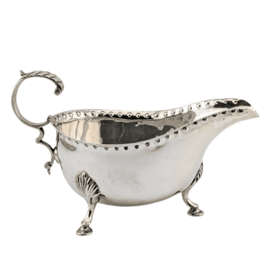 This exquisite cream jug from York dates back to 1780, showcasing the elegant design of the Georgian era. Crafted with precision and attention to detail, this vintage milk jug is a true masterpiece of craftsmanship. Displaying a classic shape and intricate handle, this piece exudes timeless charm and sophistication. Add a touch of history and luxury to your dining table with this stunning York cream jug. Perfect for serving cream or milk in style, this antique piece is sure to impress your guests and elevate any tabletop setting. Bring a piece of classic English heritage into your home with this beautiful milk jug from York.