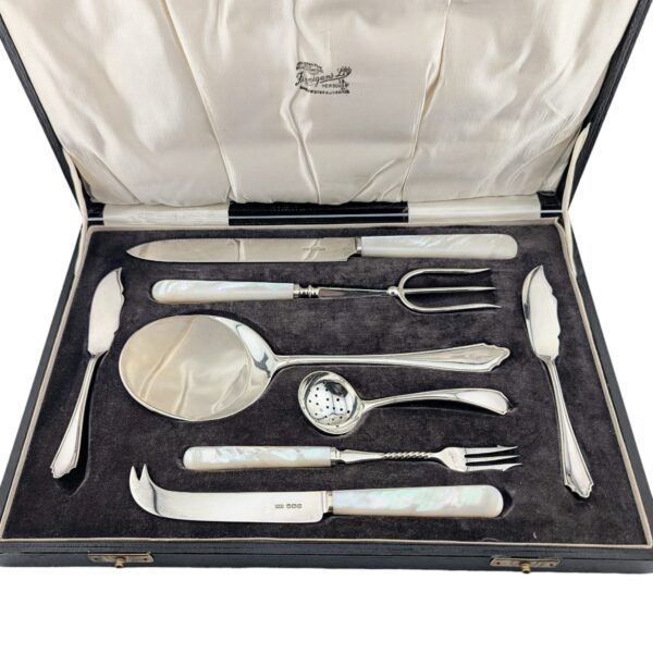 This stunning dessert set from Sheffield, crafted in 1930, is a true collector’s piece for any vintage enthusiast. The set includes a beautiful assortment of dessert forks and spoons, all exquisitely designed with intricate detailing and a timeless elegance. Made from high-quality Sheffield silver, these pieces are not only aesthetically pleasing but also durable and long-lasting. Whether you are hosting a fancy dinner party or simply looking to elevate your dessert presentation, this Sheffield dessert set is sure to impress your guests and add a touch of sophistication to any table setting. Don’t miss out on the opportunity to own a piece of history with this 20th-century Sheffield dessert set.