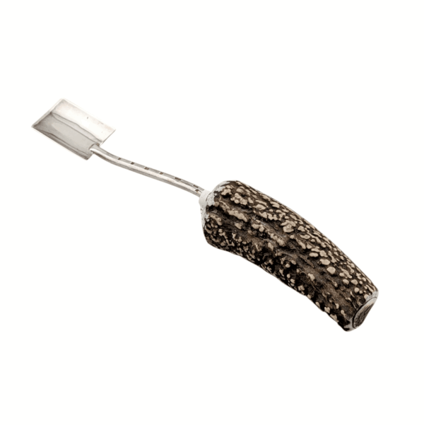 Sterling silver horn-handled cheese scoop, hallmarked in Birmingham, 2002. Modern design, classic gift idea for cheese and wine party.