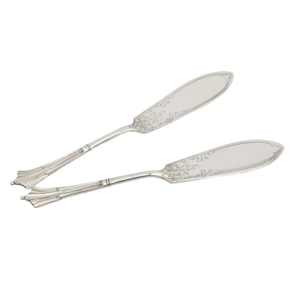Add a touch of elegance to your dining experience with this pair of butter spreaders from Sheffield, dated back to 1903. Crafted in the Edwardian style, these vintage and antique cutlery pieces boast a timeless design that is sure to impress your guests. Perfect for spreading butter or jams onto toast, bread, or scones, these butter spreaders are not only functional but also a beautiful addition to your table setting. Treat yourself to a piece of history with these Sheffield butter spreaders from 1903.