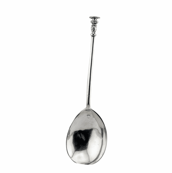 An antique silver Charles I baluster decorated seal top spoon. The spoon is engraved to the top with the prick dotted initials of the original owner – which looks to be “E C” and the date “1629”. The last numeral is unclear, but it is believed it would be “9”. The spoon is in good overall condition but shows some pit marks (mostly to the back). The spoon was found buried near Lavenham in Suffolk in 1932, so would have been pitted by acids in the soil. An interesting spoon. Dimensions: length 17.2 cm, weight 1.38 troy oz.