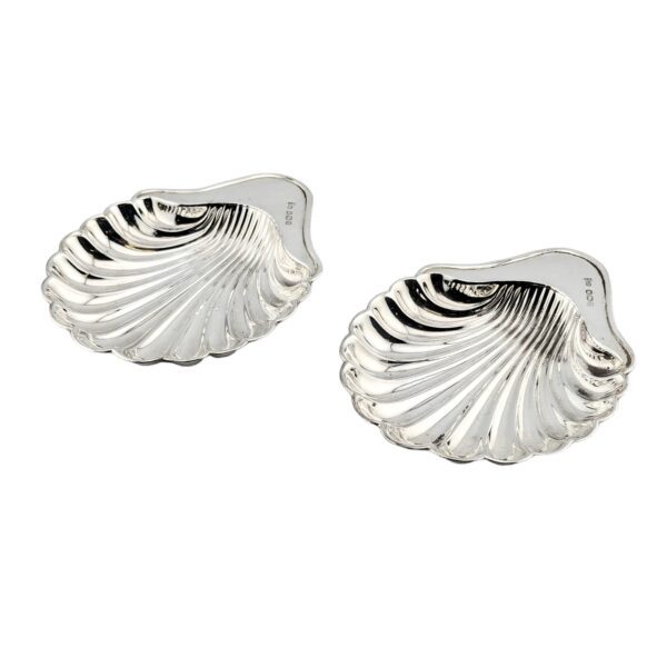 Pair of sterling silver butter shell dishes, hallmarked in Sheffield, 1905.