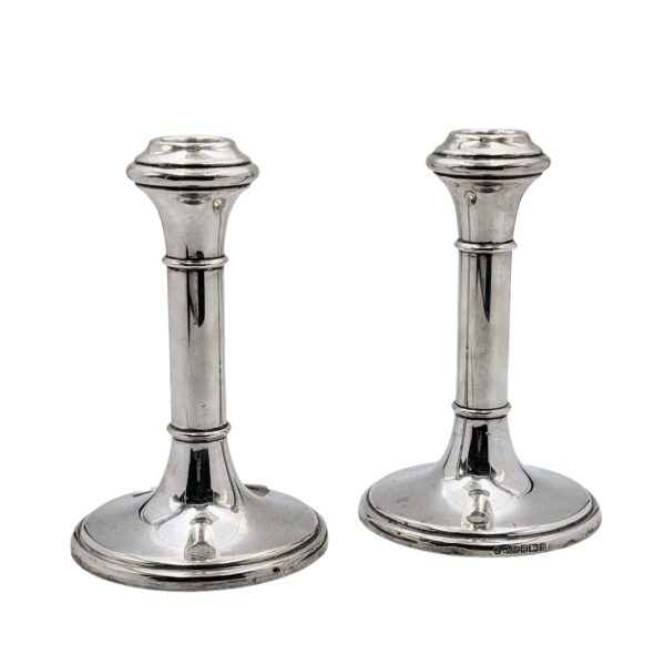 Add elegance and sophistication to your home with this stunning pair of candlesticks from Birmingham, crafted in 2005. Made with the finest materials and expert craftsmanship, these candlesticks are sure to become a focal point in any room. The sleek design and intricate detailing add a touch of vintage charm to your decor. Bring warmth and ambiance to your space with these beautiful candlesticks, perfect for a romantic dinner or special occasion. Elevate your home decor with this timeless piece from the 21st century.