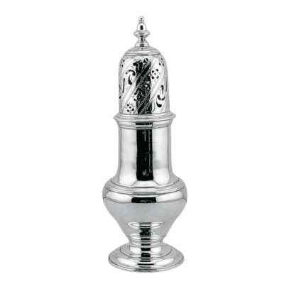 £325.00Sterling silver tea strainer with bowl, hallmarked in Sheffield, 1965.In Stock -